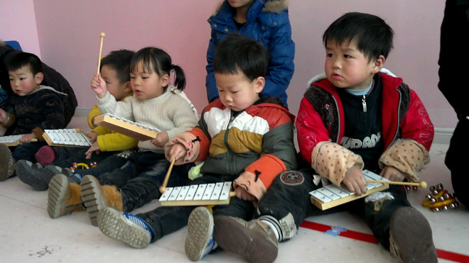 幼儿园小朋友们在上音乐课